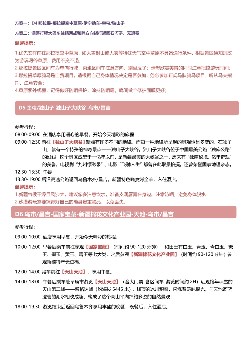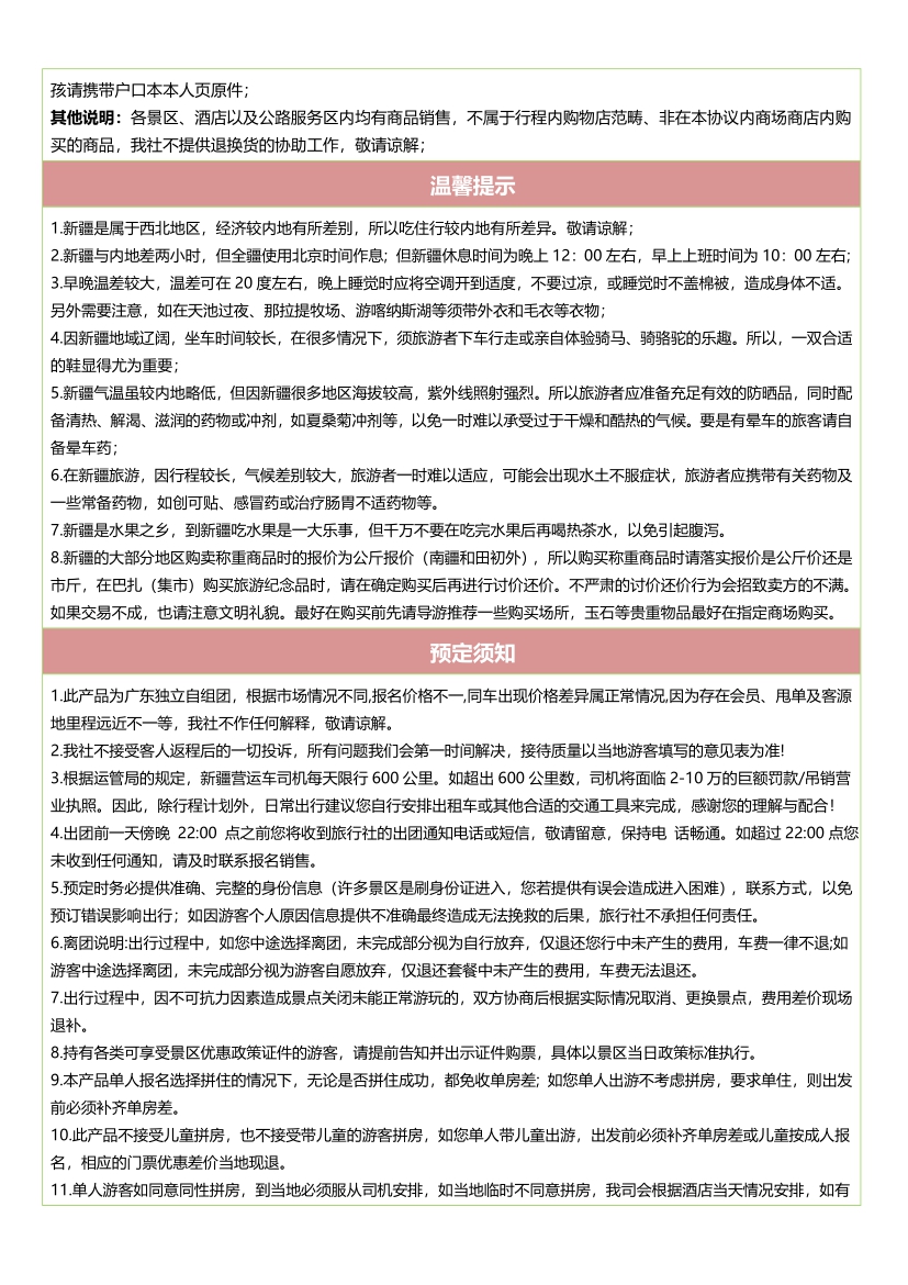 2、旅程沿線受地域(yù)限製餐飲(yǐn)質量有限且個別餐為路餐特色抓飯或拌麵 ,請遊客提前做好心(xīn)理準備 ,不 吃不退;