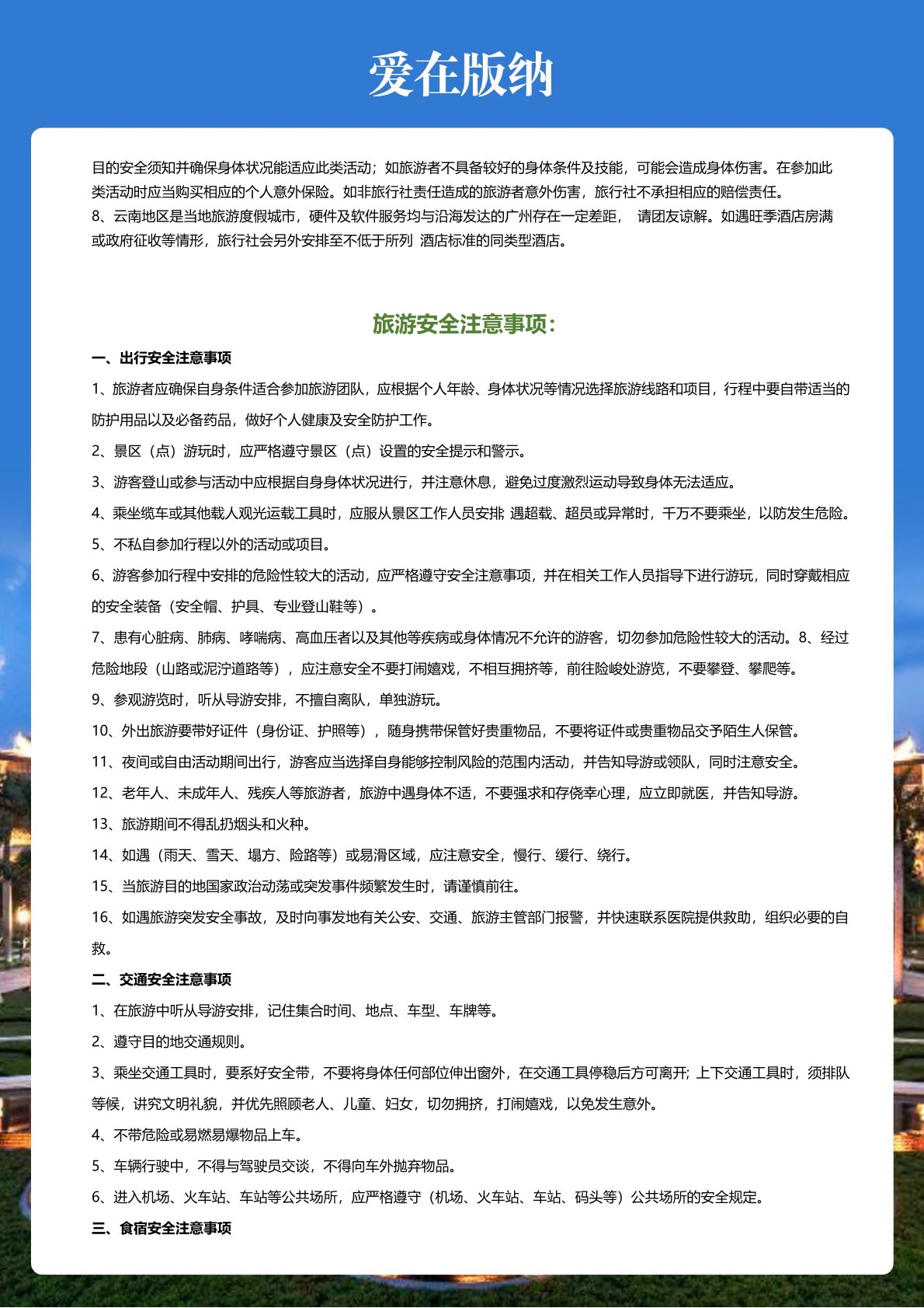5、不含旅遊意外(wài)險(建議客人自己購買)