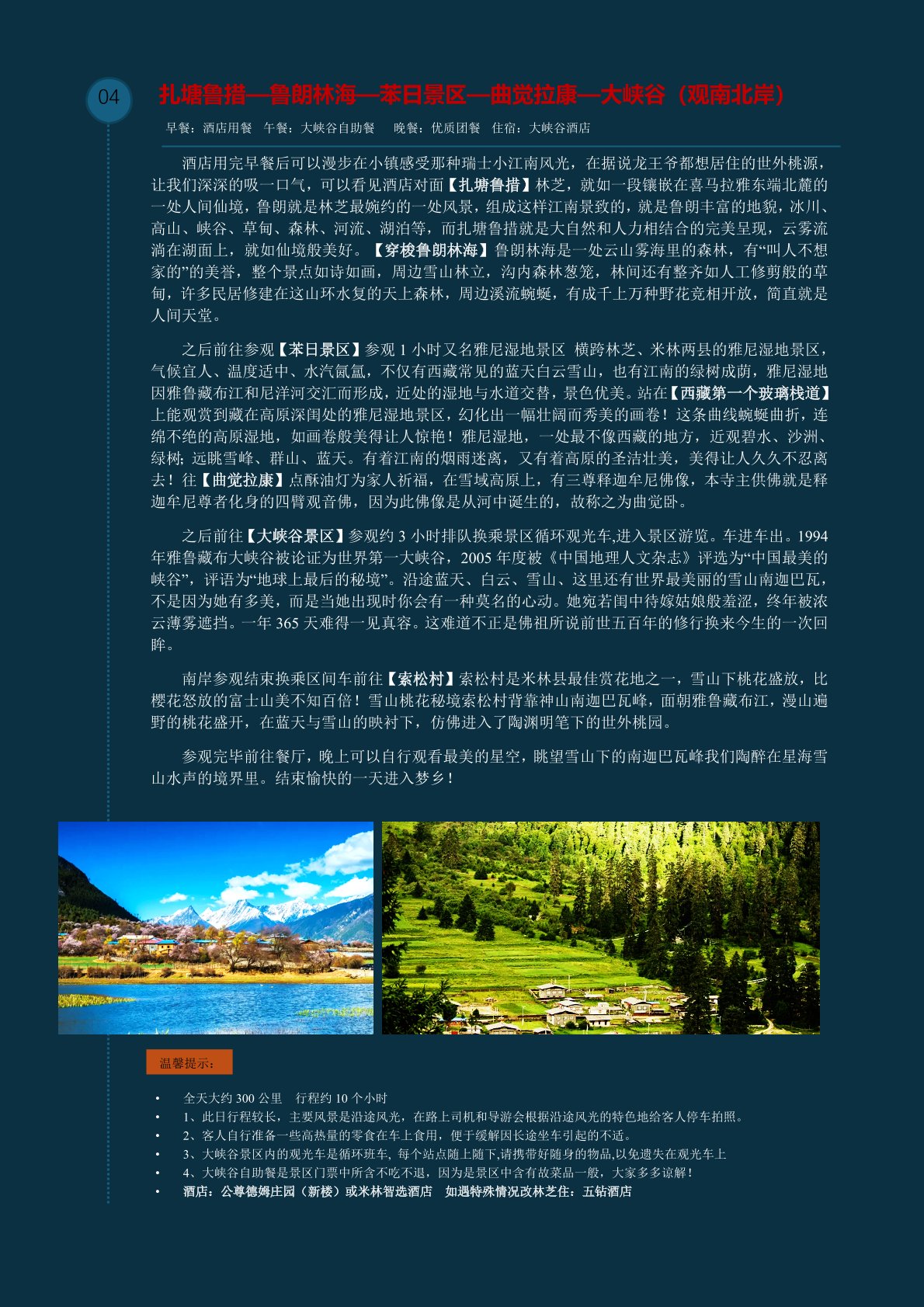 特別(bié)升級大峽穀酒店觀景房一晚以及魯朗五鑽酒店一晚