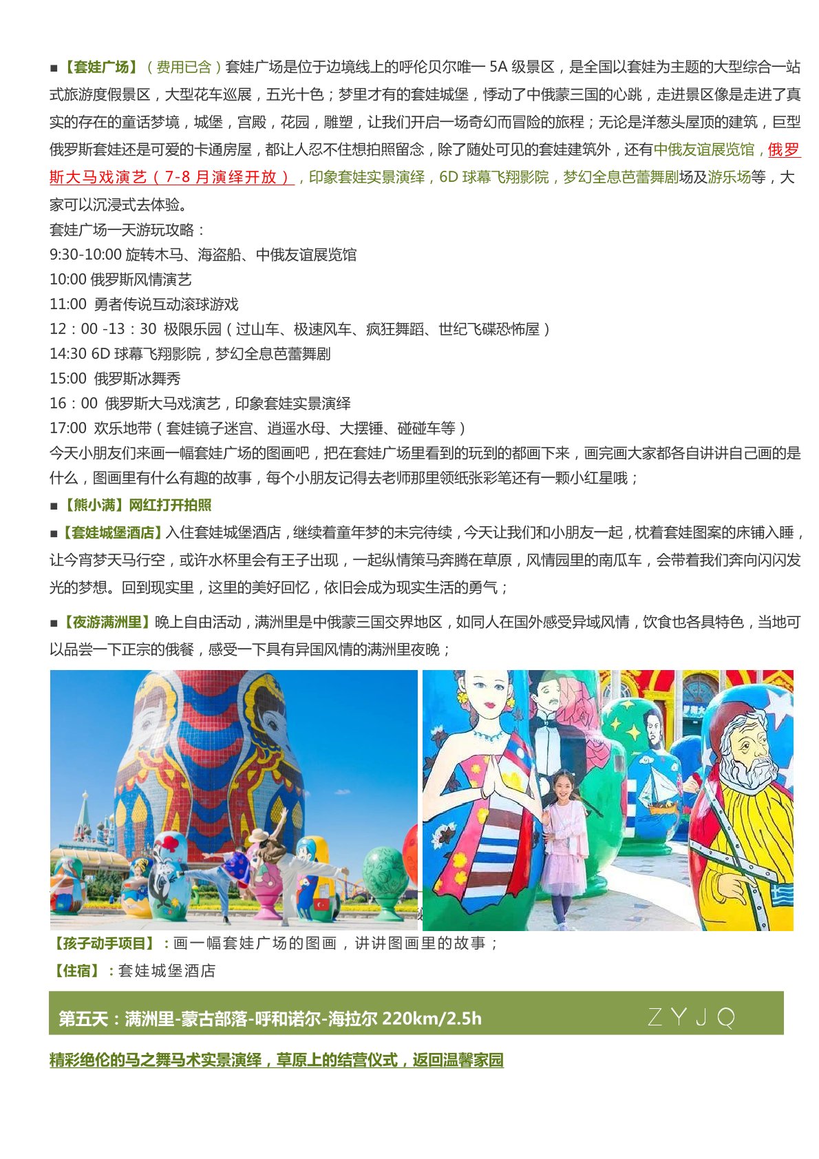 兒童各類特色體驗:莫(mò)日格勒景交+航拍+風箏+濕地+壓花+列巴+畫套娃+白樺林+樺樹貼(tiē)+牧戶+小火車(chē)+騎馬(mǎ)+巴爾虎