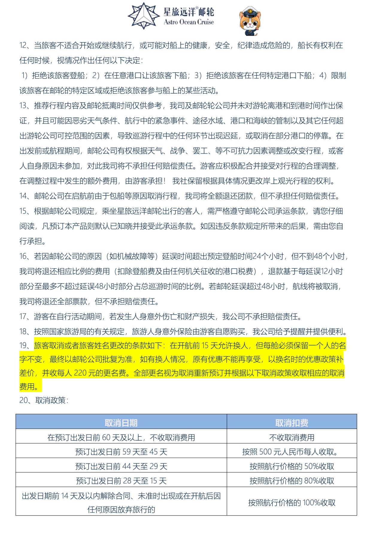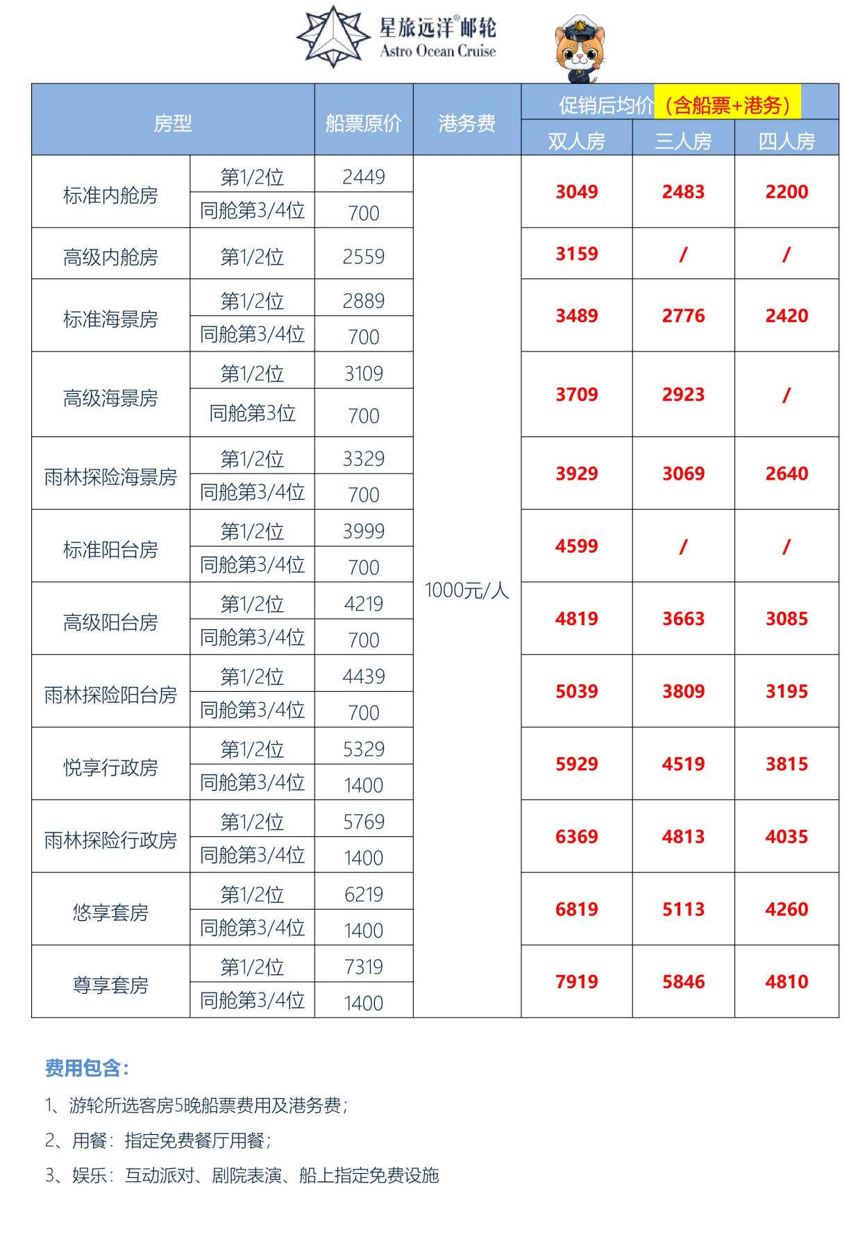 6、單人入住需要支付200%的船票費(fèi)用(yòng);