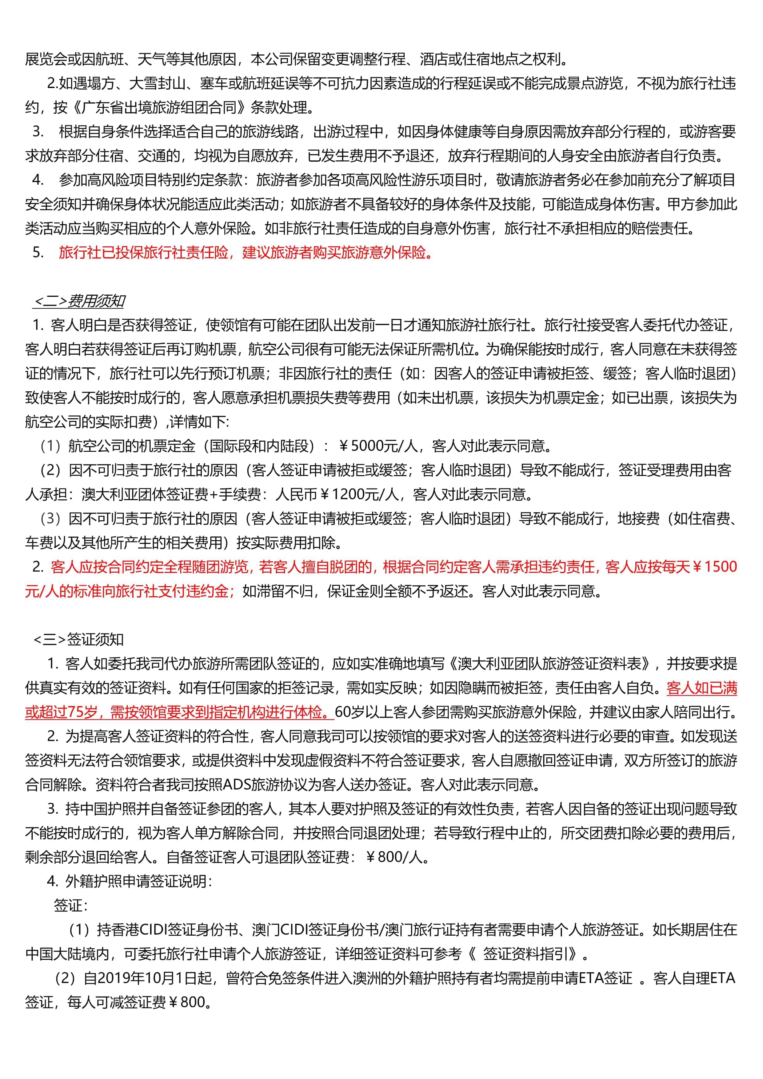 客人如委托我司代辦旅遊所需團隊(duì)簽證的,應如實準確地(dì)填寫(xiě)《澳大利亞團(tuán)隊(duì)旅遊簽證資料表》,並按要求提供真實有效的簽證資料。如有任何國(guó)家的拒簽(qiān)記錄,需如實反映;如(rú)因隱瞞而被拒簽,責任由客人自(zì)負。客人如已(yǐ)滿或(huò)超過75歲,需按領館要求到指定機構進(jìn)行體(tǐ)檢。60歲以上客人參團需購買旅(lǚ)遊意外保險,並(bìng)建(jiàn)議由家(jiā)人陪同出行。
