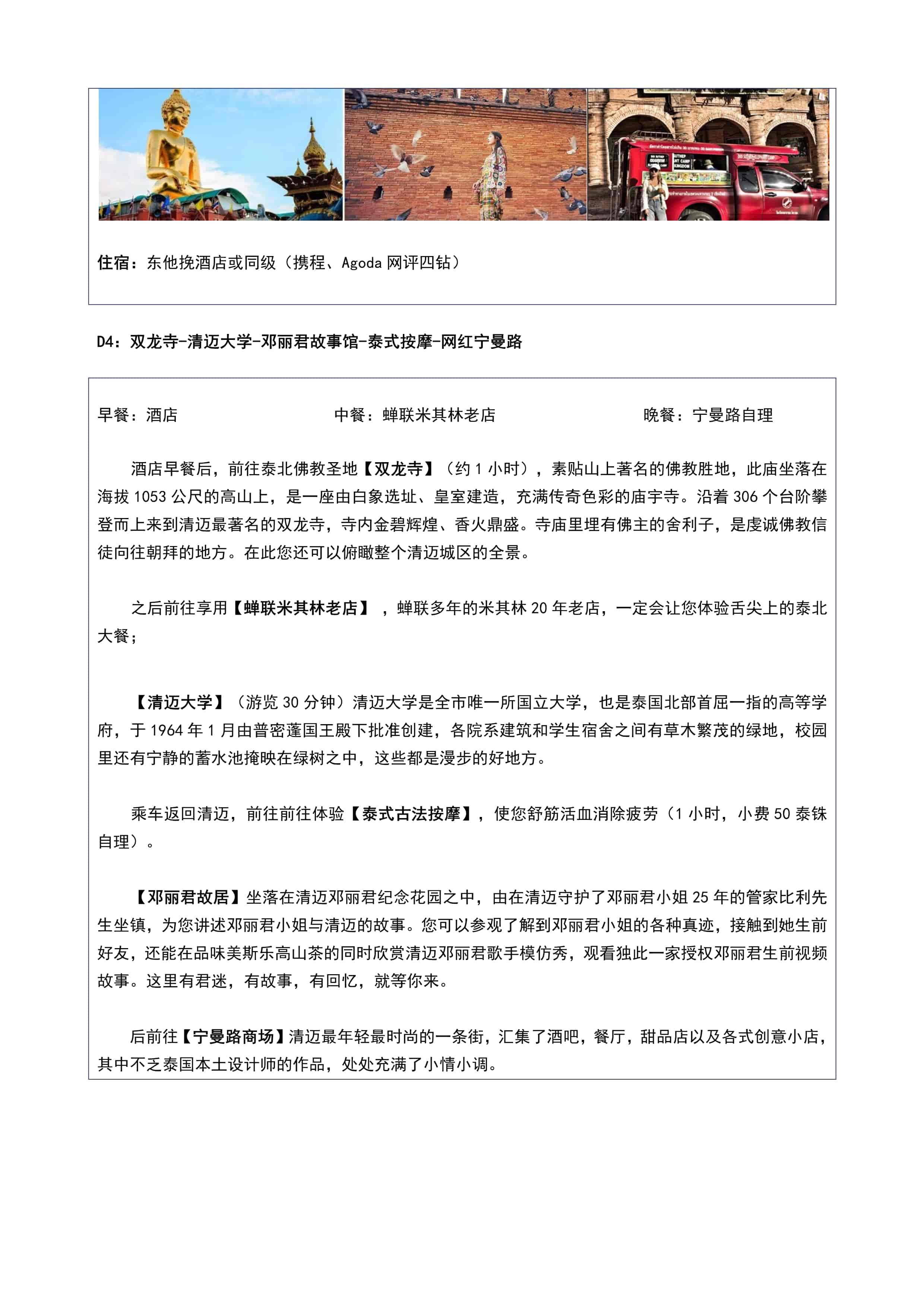 D4 | 雙龍寺-清(qīng)邁大學-鄧麗君故事館-泰式按摩-網紅寧曼路 | 酒(jiǔ)店包含 | 蟬聯米其林老店(diàn) | 寧曼路自理 |