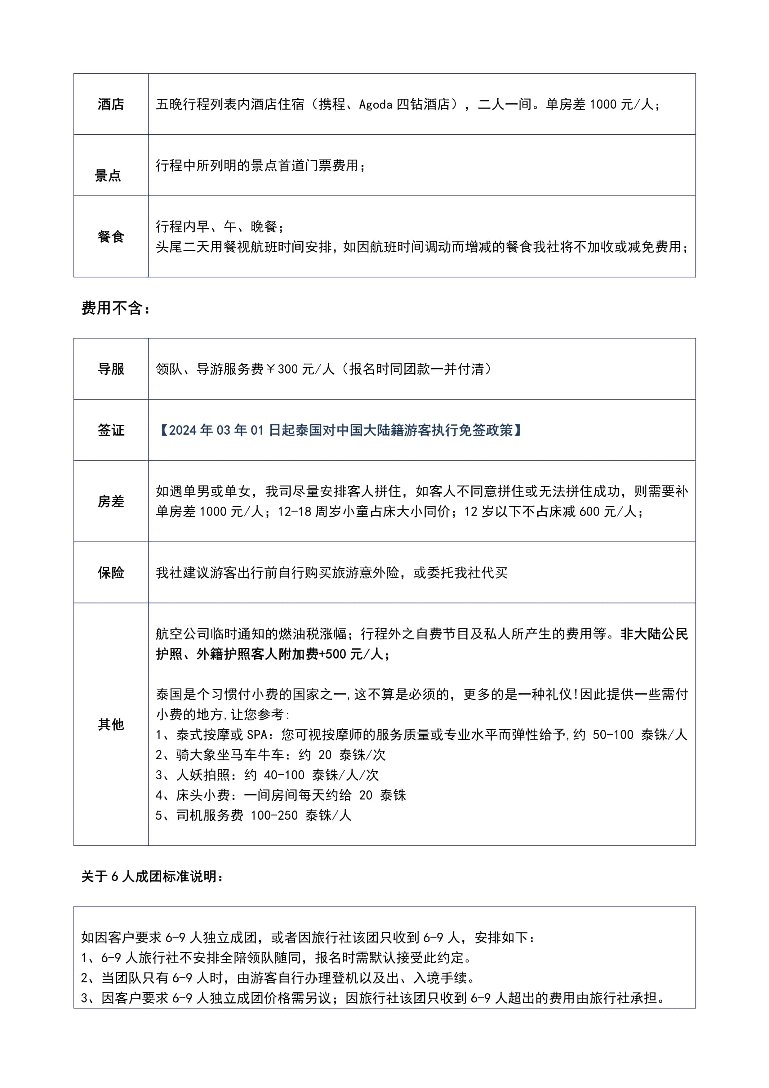 3、因(yīn)客戶要(yào)求 6-9 人獨立成團價格需另議;因旅行社該團隻(zhī)收(shōu)到 6-9 人(rén)超出的費用由旅行社承擔。
