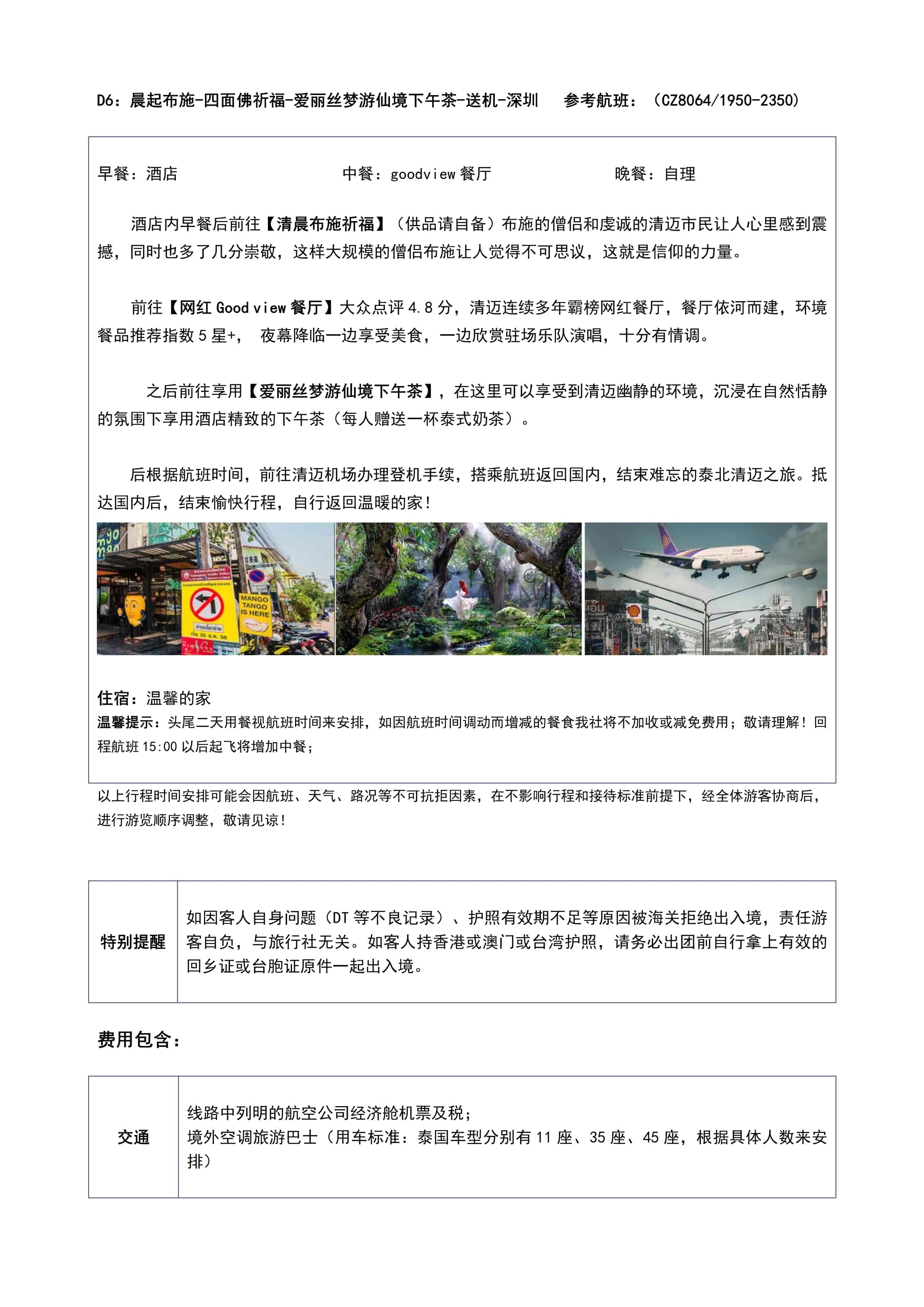 D1 | 深圳-清邁 | 自理(lǐ) | 自理 | 飛天咖(kā)喱雞麵 |