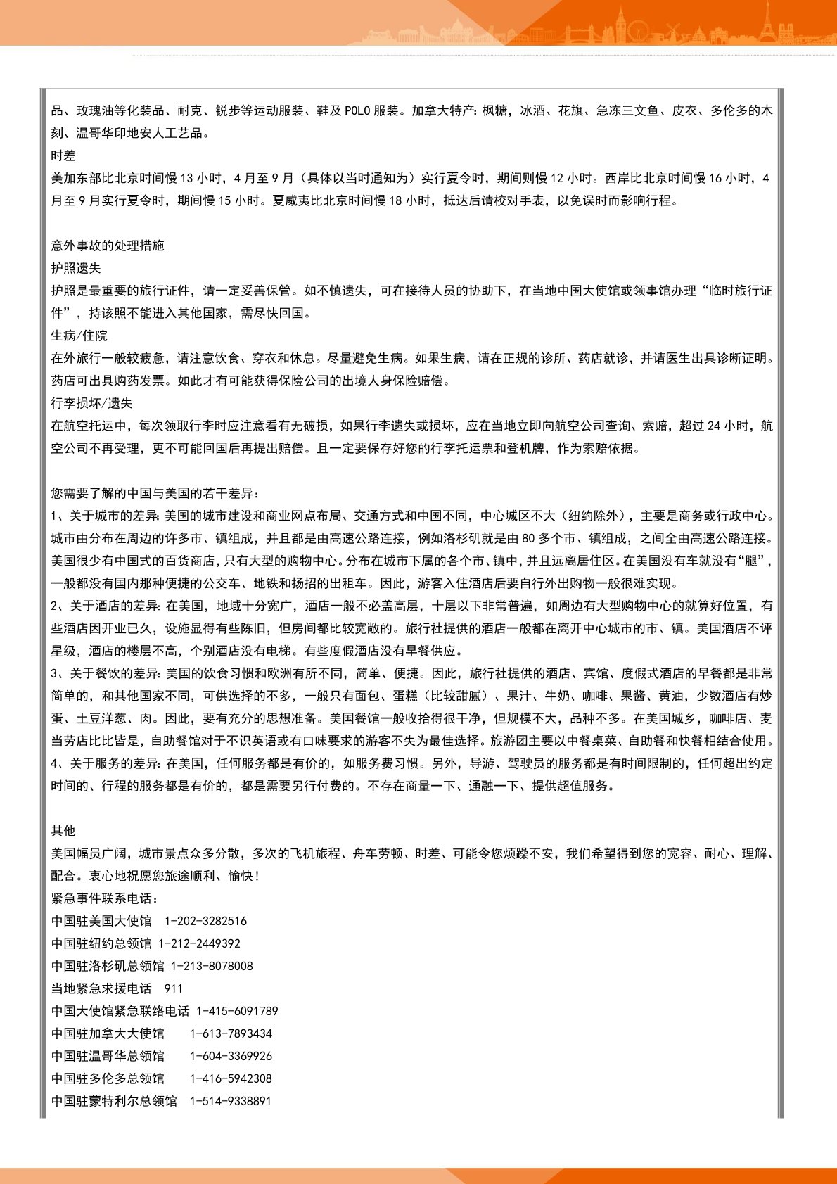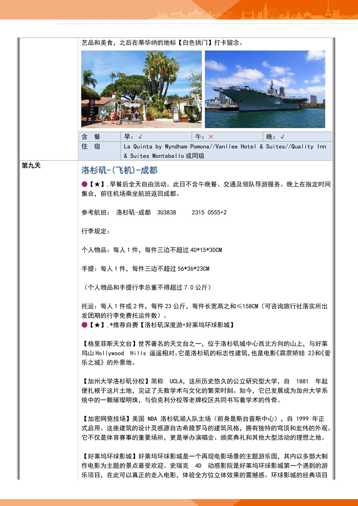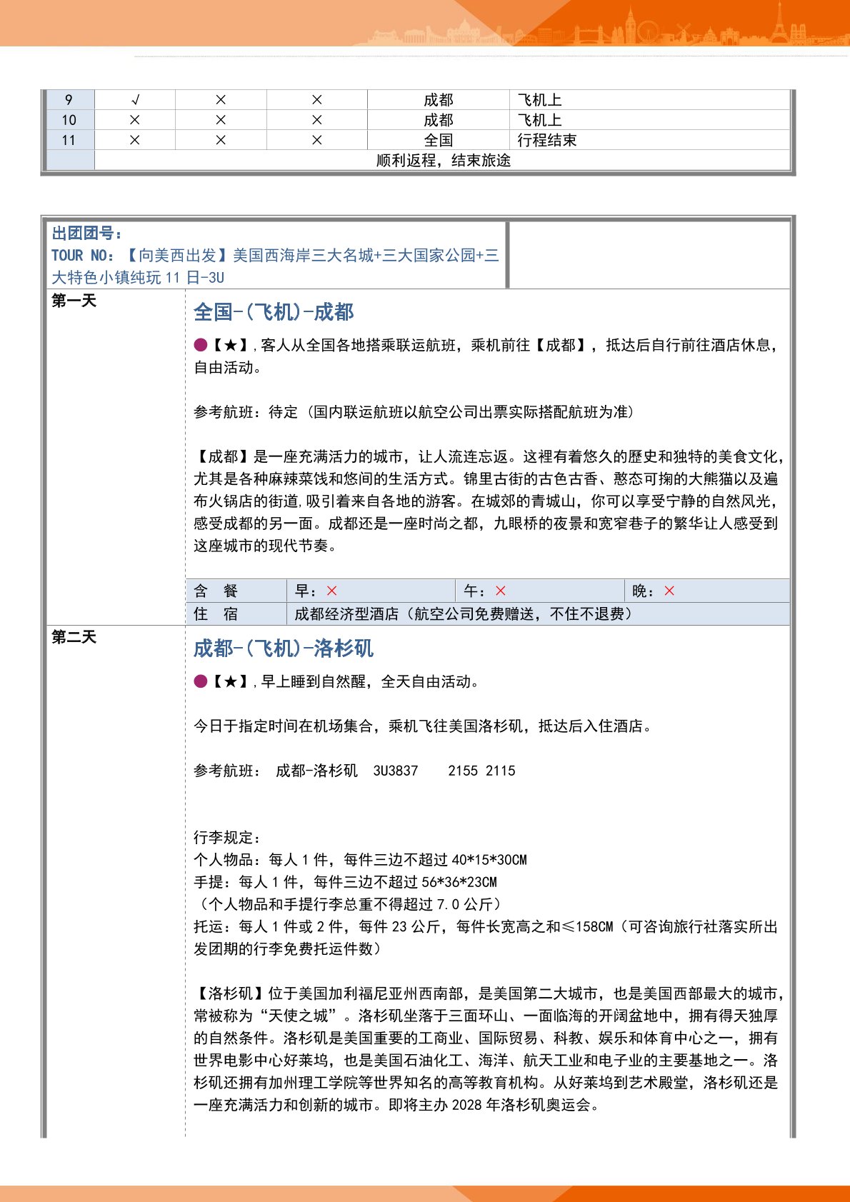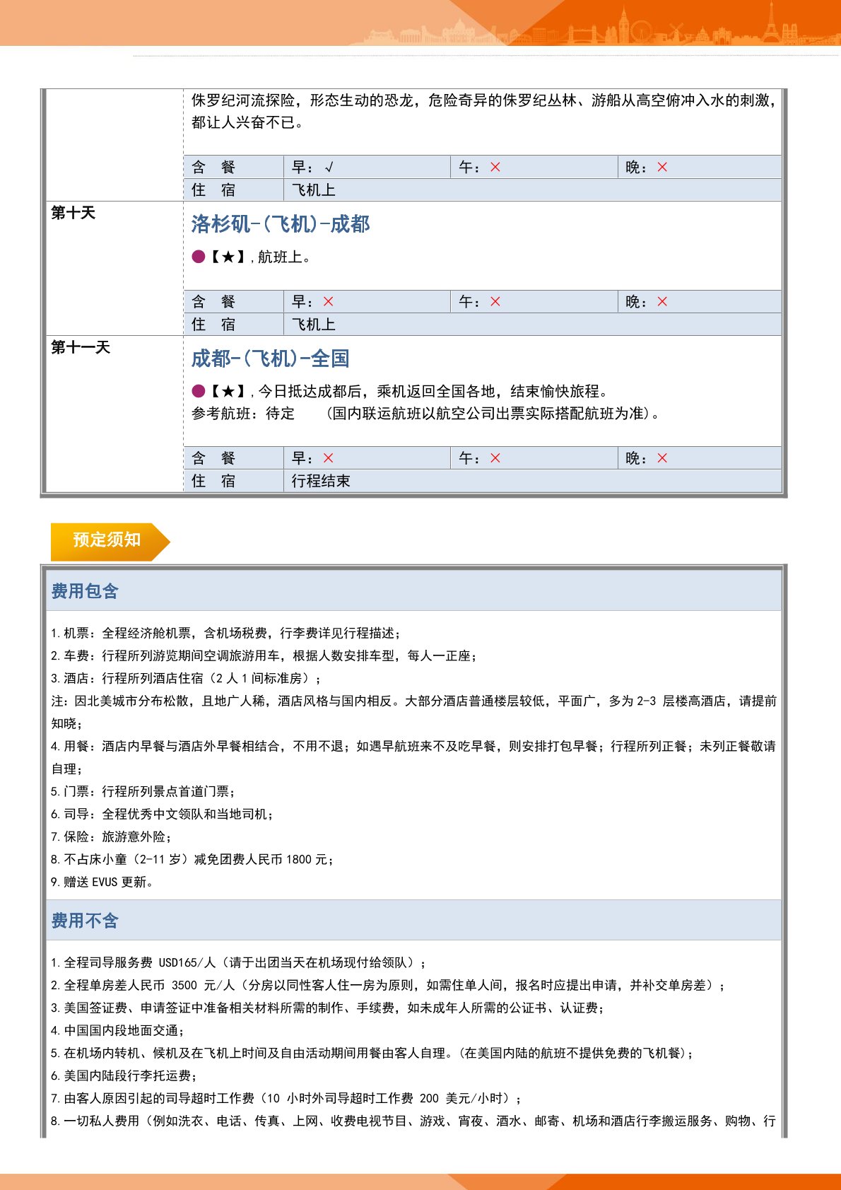 5.在(zài)機場內轉機、候機及在(zài)飛機上時間及自由活動期間用餐由客人自理。(在美國內陸的航班不提供(gòng)免費的飛機餐);