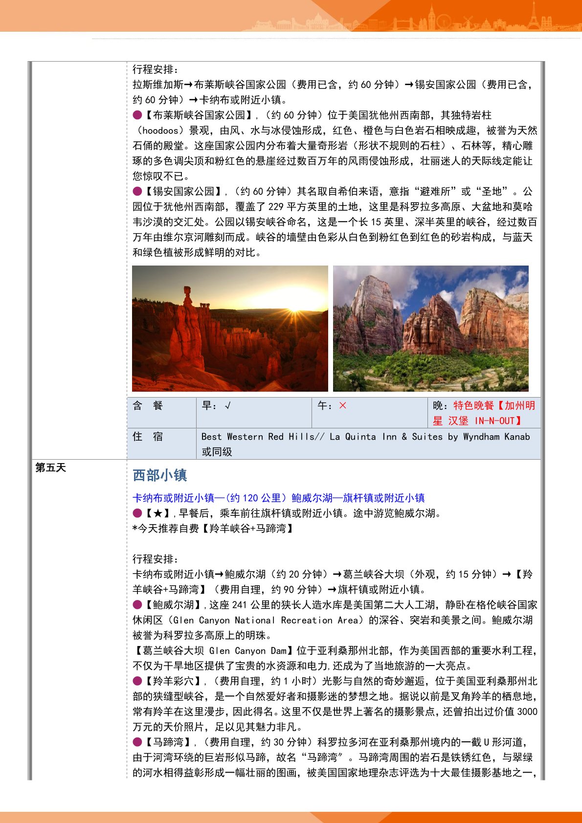 4.用餐:酒店內早餐與酒店外早餐相結合,不用不退;如遇早航班來不及吃早餐,則安排打包早(zǎo)餐;行程所列正餐;未列正餐敬請