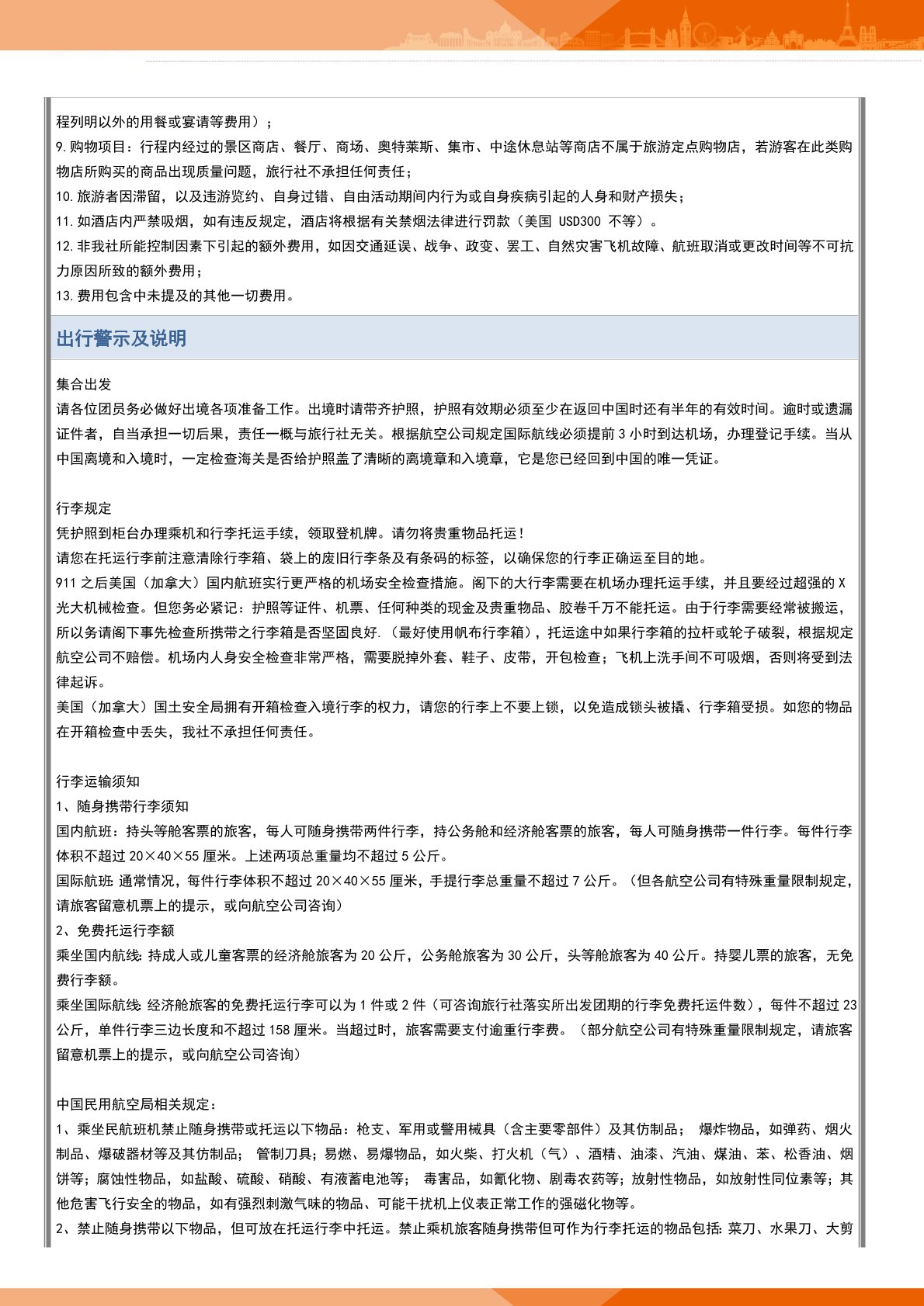 12.非我社(shè)所能(néng)控製因素下引起的額外費用,如因交通延誤、戰爭、政變(biàn)、罷工、自然災害飛機故障、航班取消或更改時間等不(bú)可(kě)抗