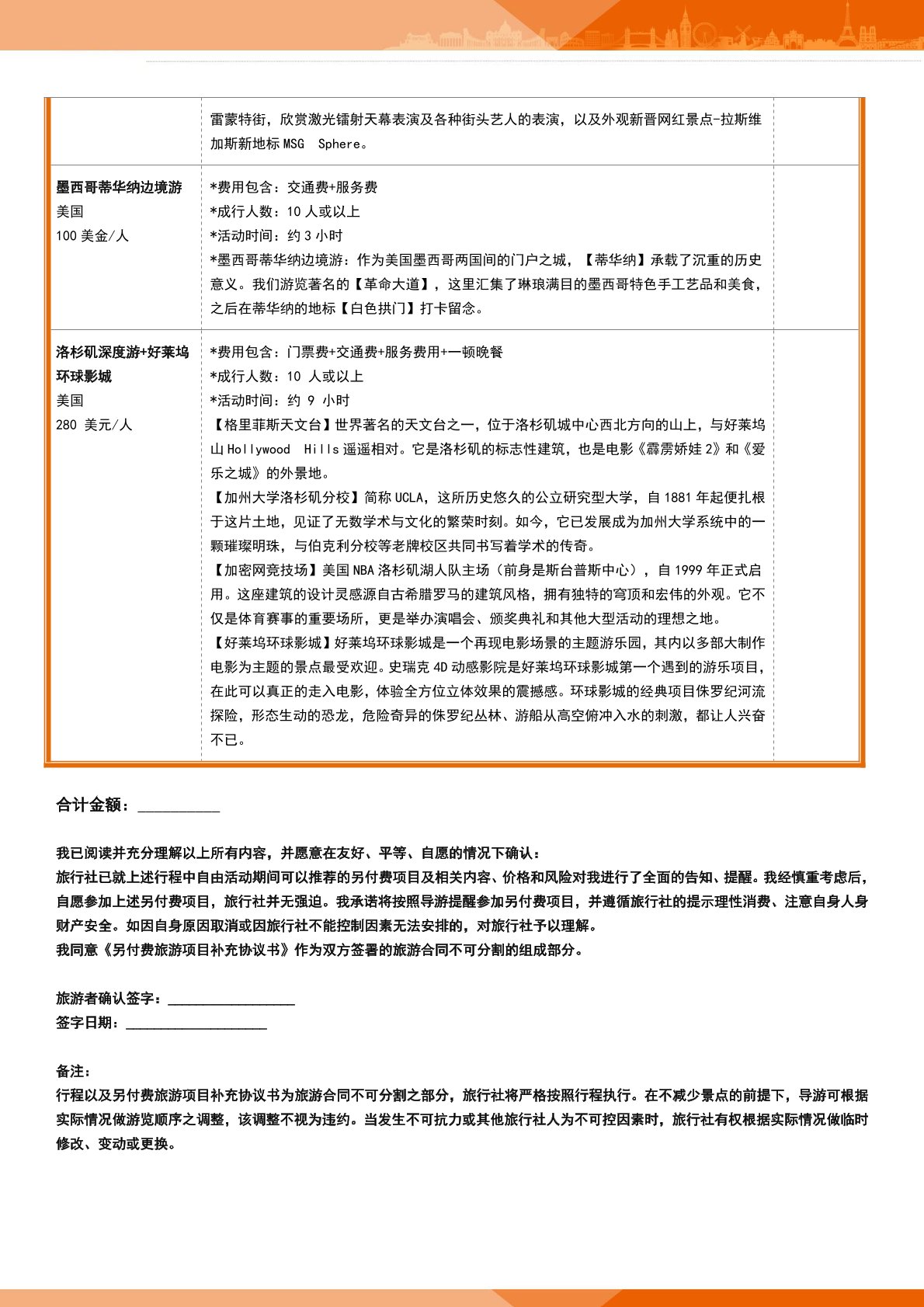7.由客人原因引起的司導(dǎo)超時工作費(10 小(xiǎo)時外司導超時工作(zuò)費 200 美元/小時);