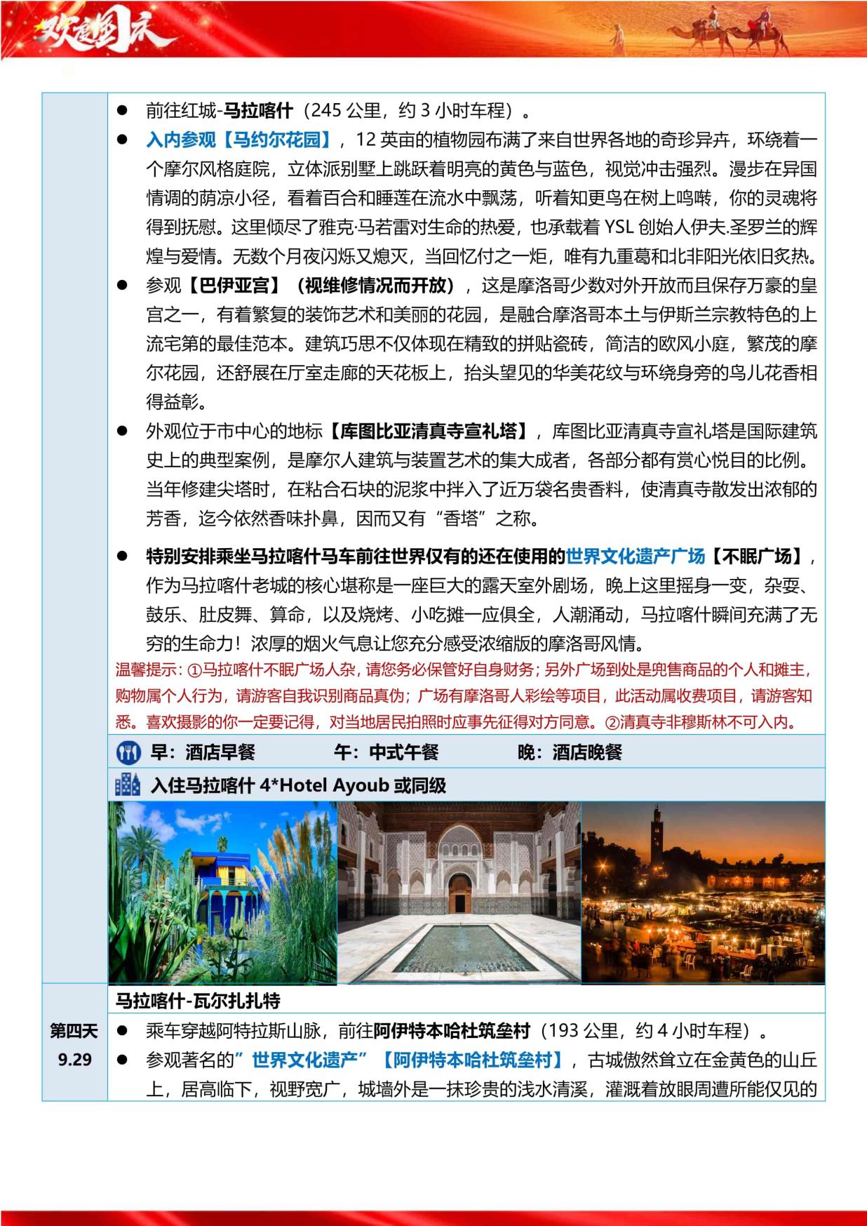 摩(mó)洛哥(gē)是一個神秘而美麗的穆斯林(lín)國家,當地景點(diǎn)受國家節日/宗教節日/政府媒體(tǐ)活動等多種因(yīn)素影響會臨時關閉,固(gù)行程中所列景點如遇關閉為正(zhèng)常現象,因以上情況(kuàng)未能參觀到景點不(bú)做賠償,敬請理解。 |