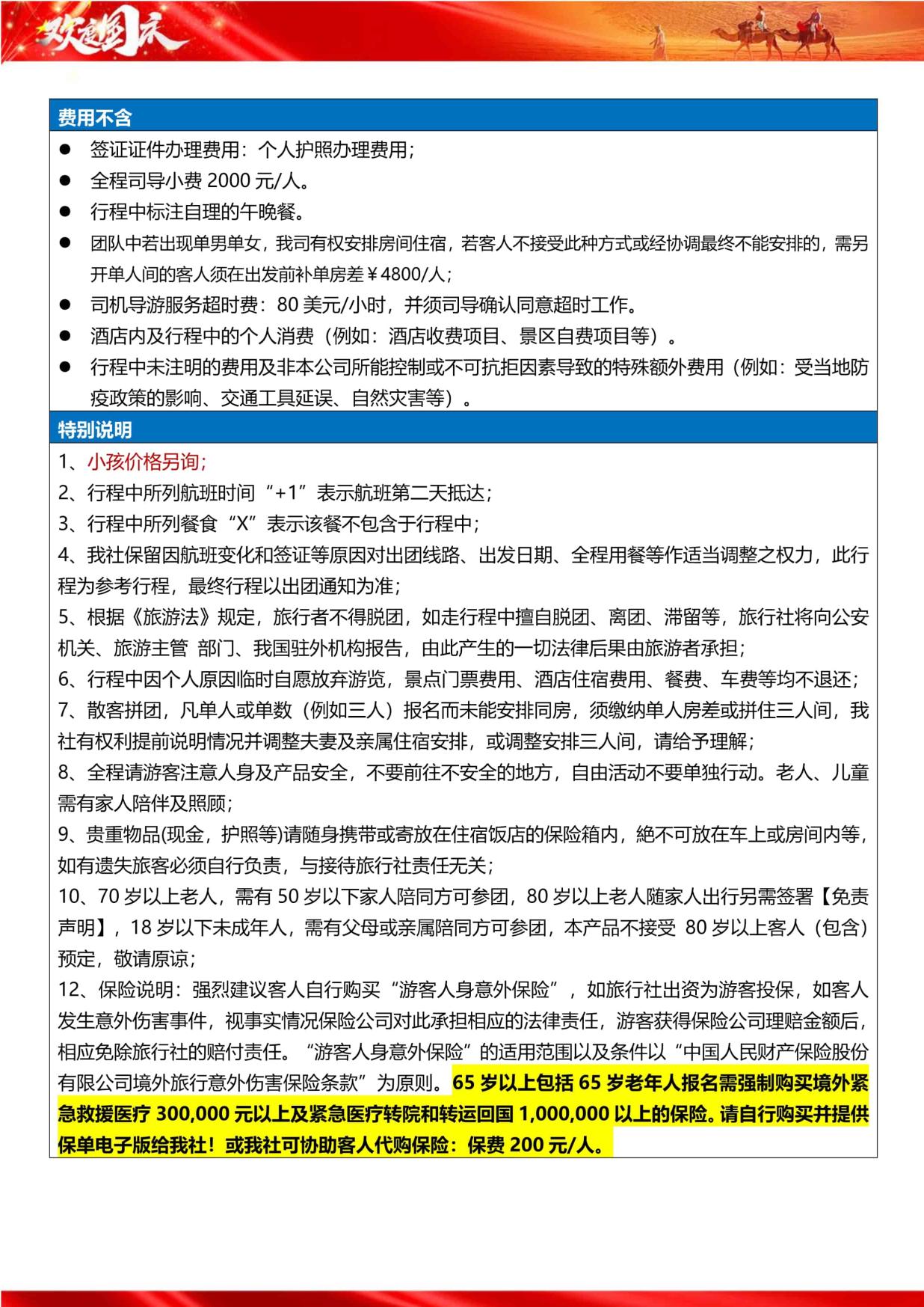 小費方麵 | 1.在境外有給小費的習慣(guàn),支付小費也是一種禮節,越野車和騎駱駝每人每次 1 美金 |