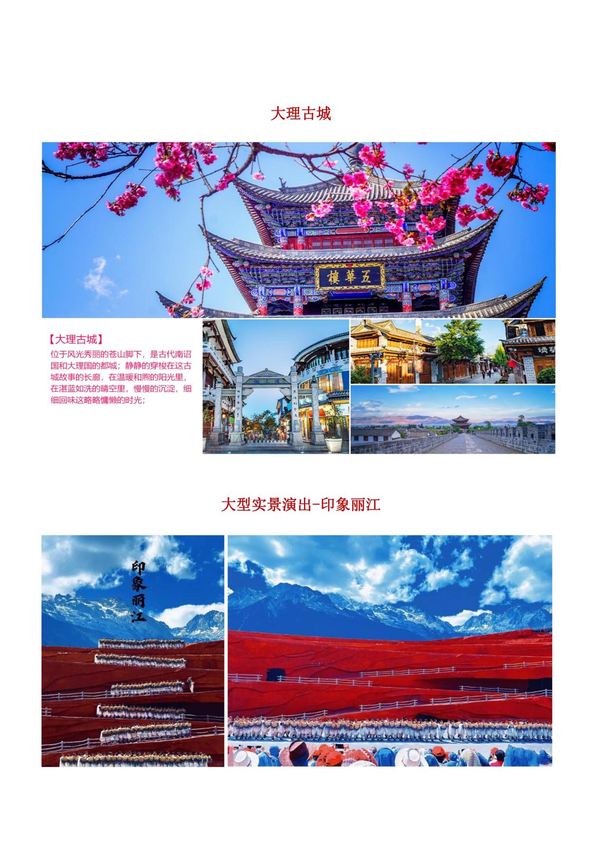 美景:麗江古城+玉龍雪山大(dà)索道+印象麗江+藍月穀+喜洲(zhōu)古鎮+大理古城+虎跳峽+壇(tán)城+ 獨克宗+普達措森林公園+束河古鎮+黑龍潭公園 (若行(háng)程(chéng)中行程景點未安排(自願取消或不可抗力除外),我司會立即核(hé)實協調為客戶 安排行程內披露的行程(chéng),如無法安排,有門票景點費用退一賠一)
