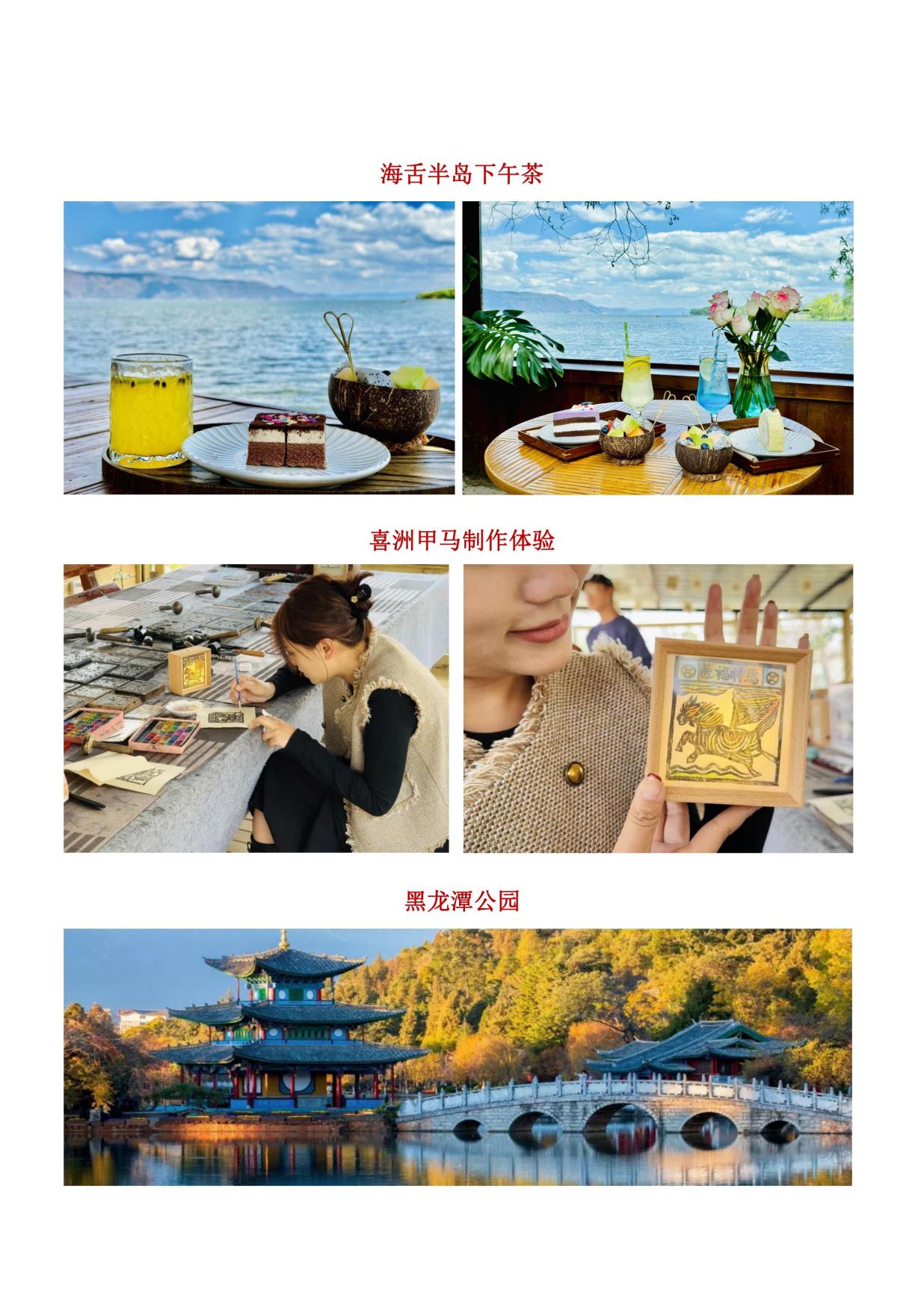 贈送:贈觀價(jià)值 280 元《印象·麗江》大型實景演(yǎn)出+喜洲甲馬體驗+海(hǎi)舌半島下午茶 (若行程中贈送點未安(ān)排(自願取消或不可抗力除外),我司會立即核實協調為客戶安 排行程內(nèi)披露的行程,如無法安(ān)排,有門(mén)票景點費用退一賠(péi)一)