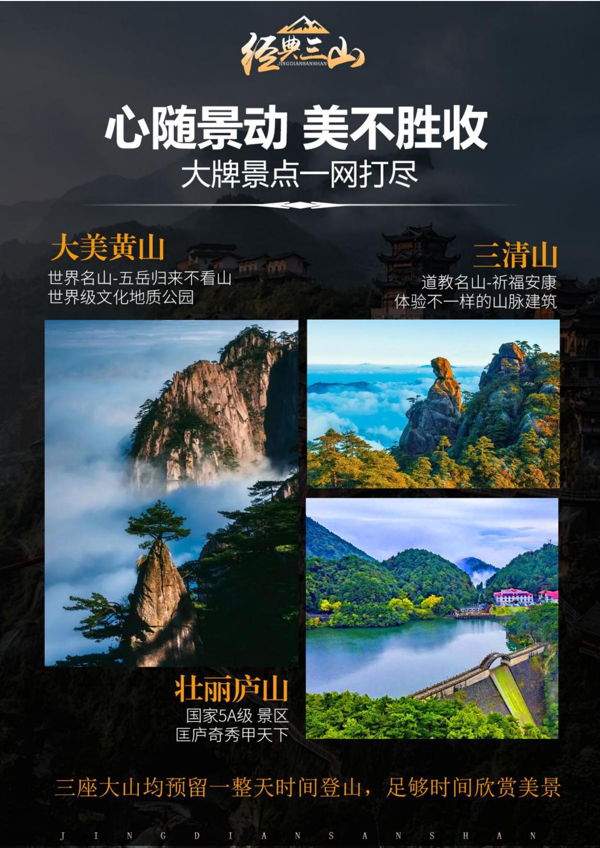 ●道教名山-祈福安康-體驗不一(yī)樣的山(shān)脈建築—“三清山” ●國家-5A 級”“活動著的清明上河圖” —古(gǔ)徽州老街