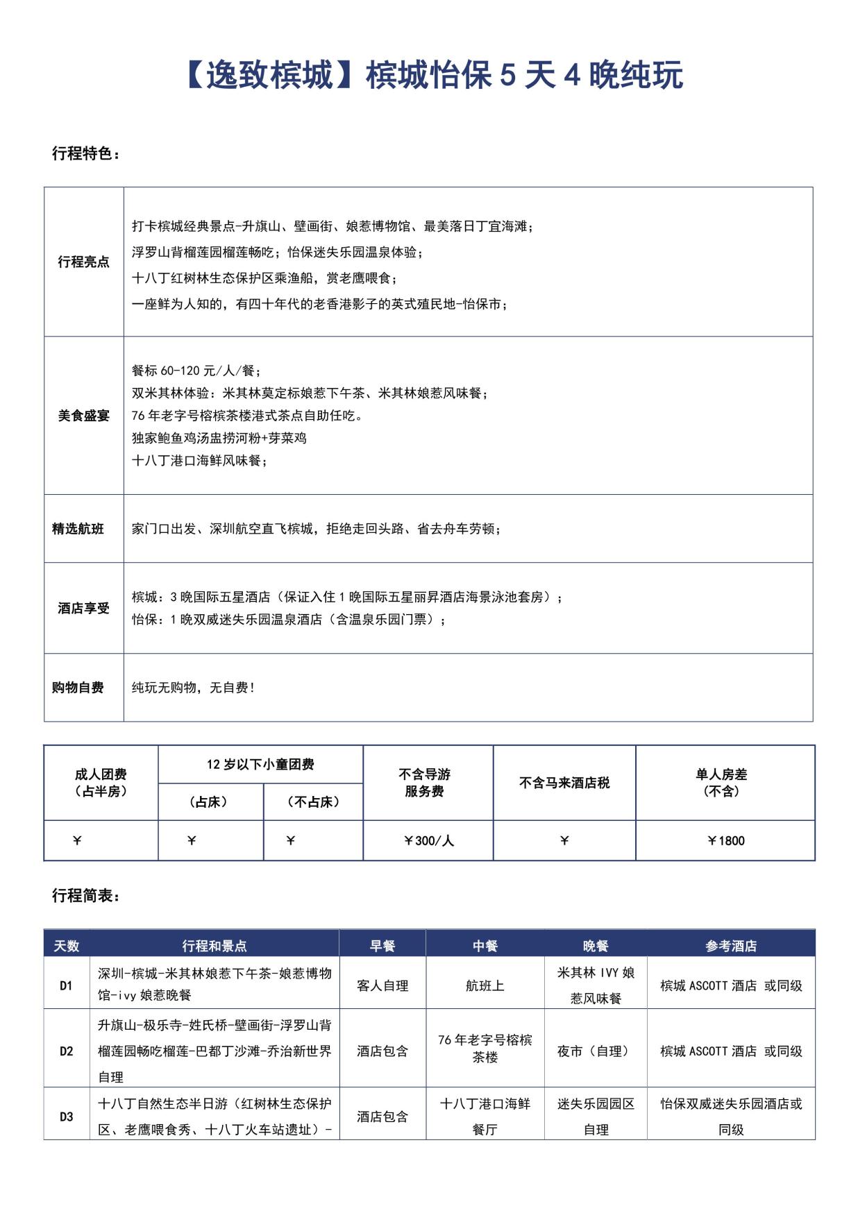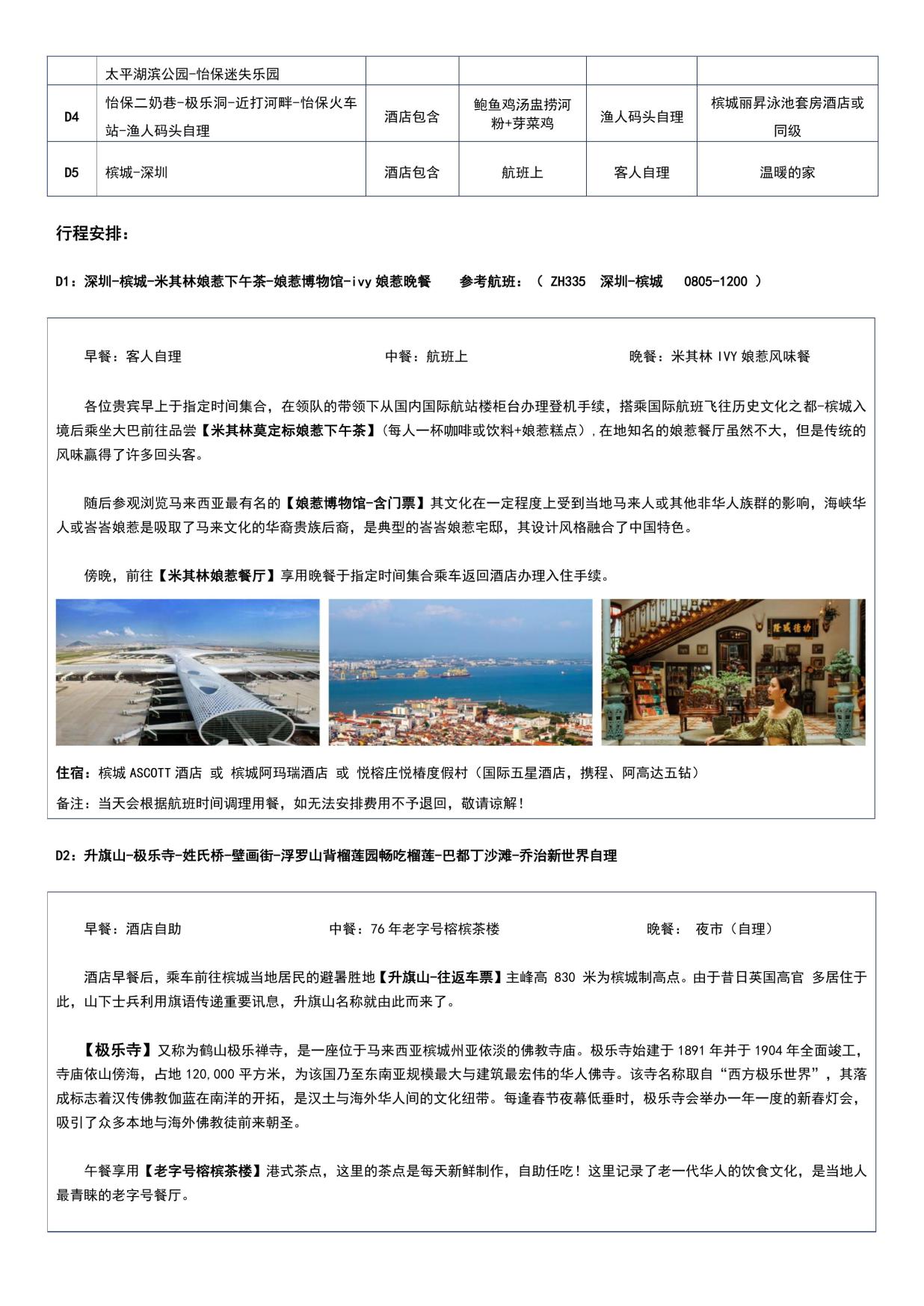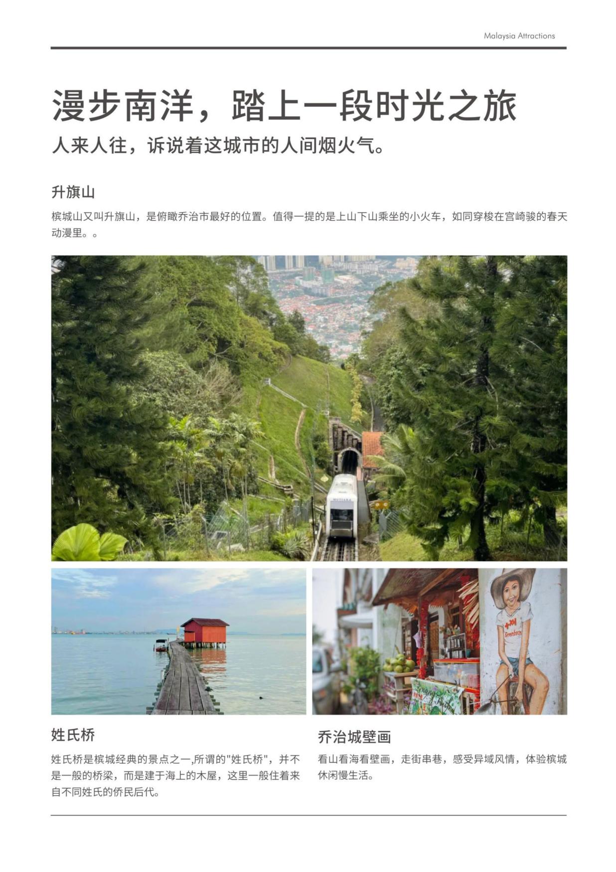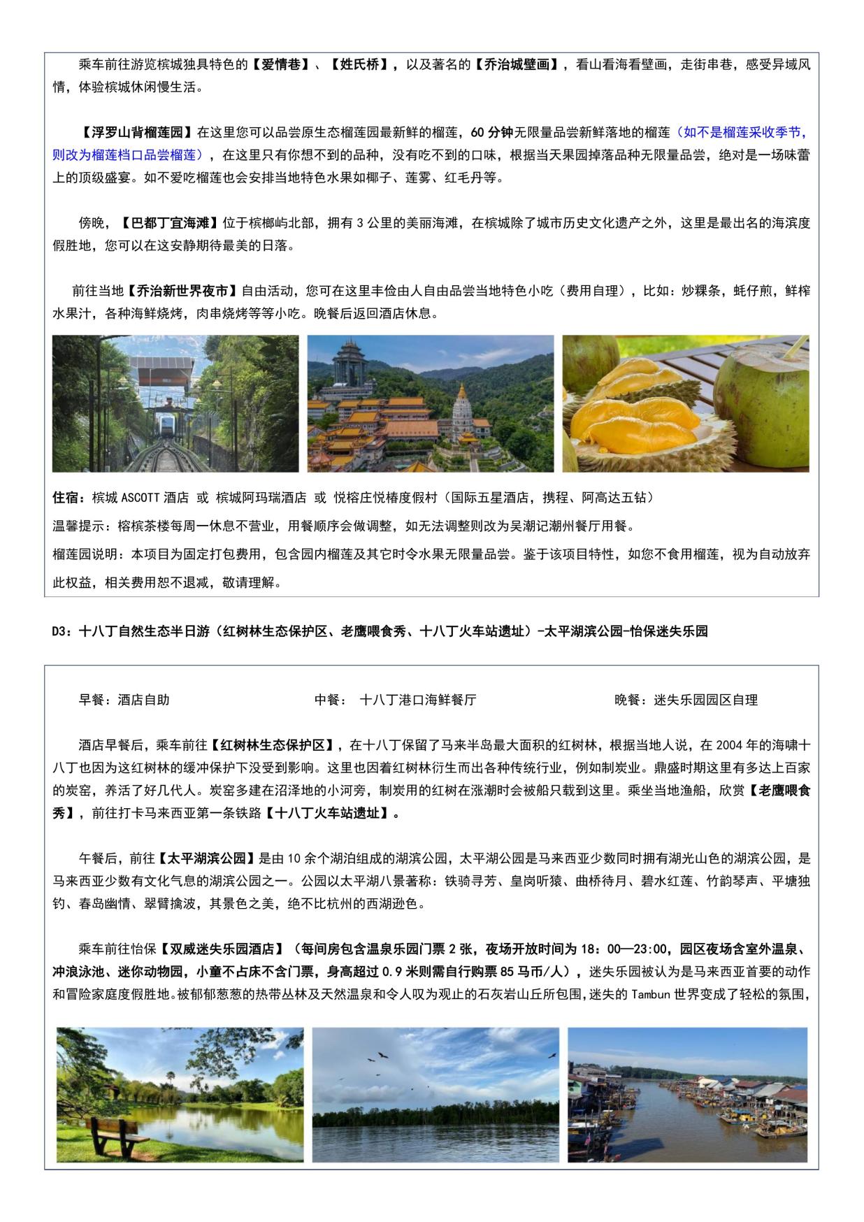 行程亮點 打(dǎ)卡檳城經典景點-升旗山(shān)、壁畫街、娘惹博物館、最美落(luò)日丁宜海灘; 浮羅山背榴蓮園榴蓮暢吃;怡保迷失樂園溫泉體驗; 十八丁紅樹林(lín)生態保護區乘漁船,賞老鷹喂食; 一座鮮為人知的,有四十年代的老香港影子的英式殖(zhí)民地-怡(yí)保市;