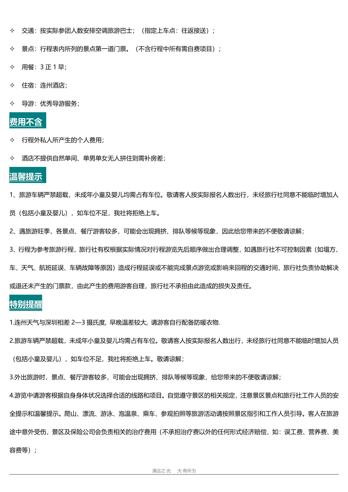 預訂旅(lǚ)遊線路前,請務必確認(rèn)行程日期、包含景點與交通方式,了解退改政策以防不測。核對個(gè)人信息準確無誤,關注天氣預報及當地風俗習慣。提前支付定(dìng)金或全(quán)款,保(bǎo)留支付憑證。出行(háng)前查收電子票/確認單,並攜帶(dài)有效證(zhèng)件。如有疑問,及時聯係客服(fú)溝通。享(xiǎng)受旅程,安全第一,祝您旅途愉快!