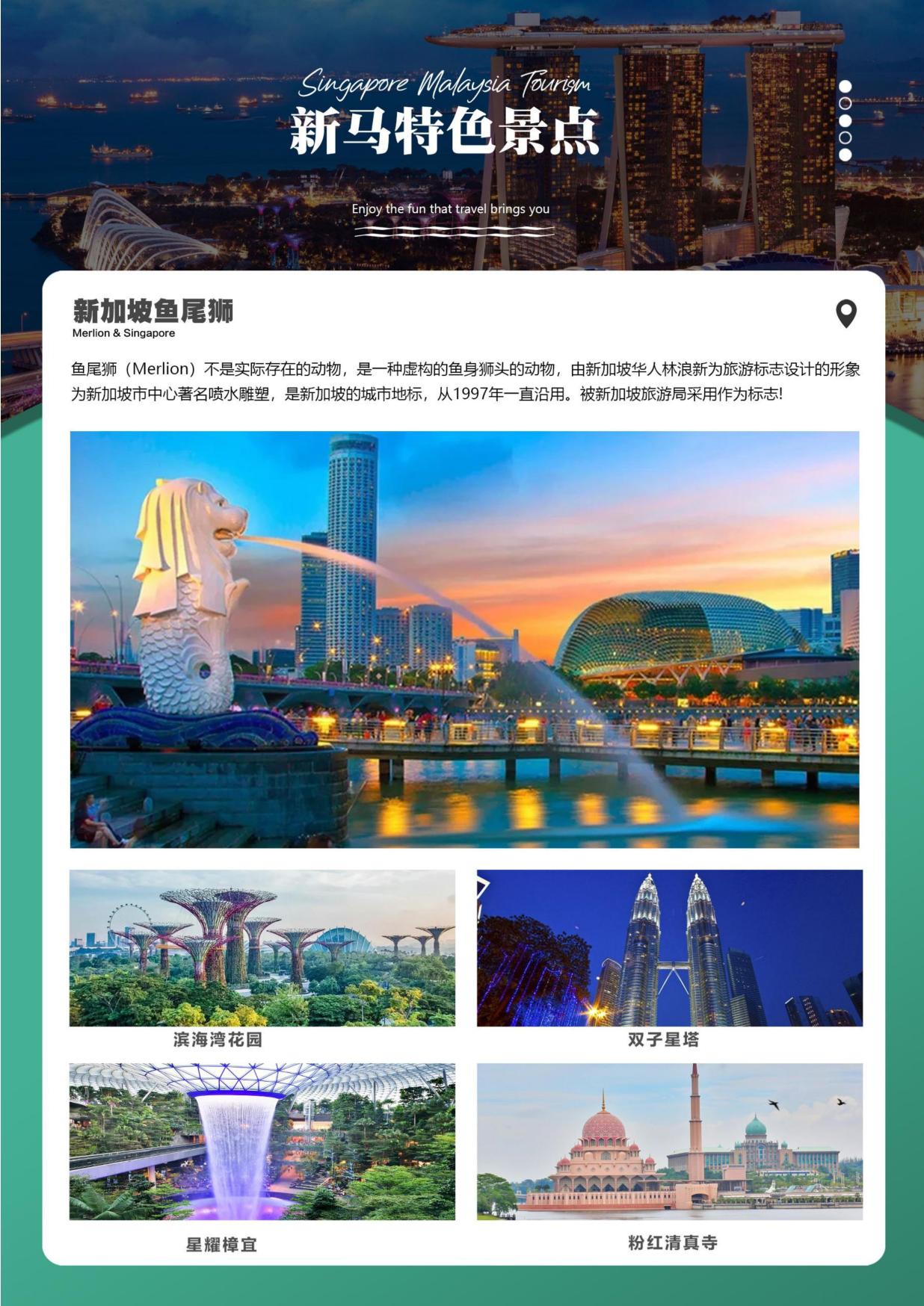 全程4早4正餐;早(zǎo)餐為酒店自(zì)助(zhù),正(zhèng)餐馬來西(xī)亞60元(yuán)/人(rén)/餐,新加坡餐標100元人; (如因無法抗拒因素原因或個人原因不用餐則不退餐費) |