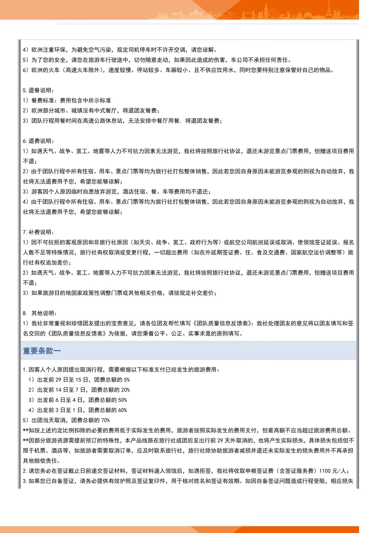 3.官導服務費:因境外目的地有小費(fèi)文化,團友須另付歐洲境內中文導遊和司機服務費;為了感(gǎn)謝歐洲各地有當地(dì)官方導遊講解及熱 忱服務(例如:盧浮宮,羅馬,威尼斯等等),請另付上小費 EUR 1/人。