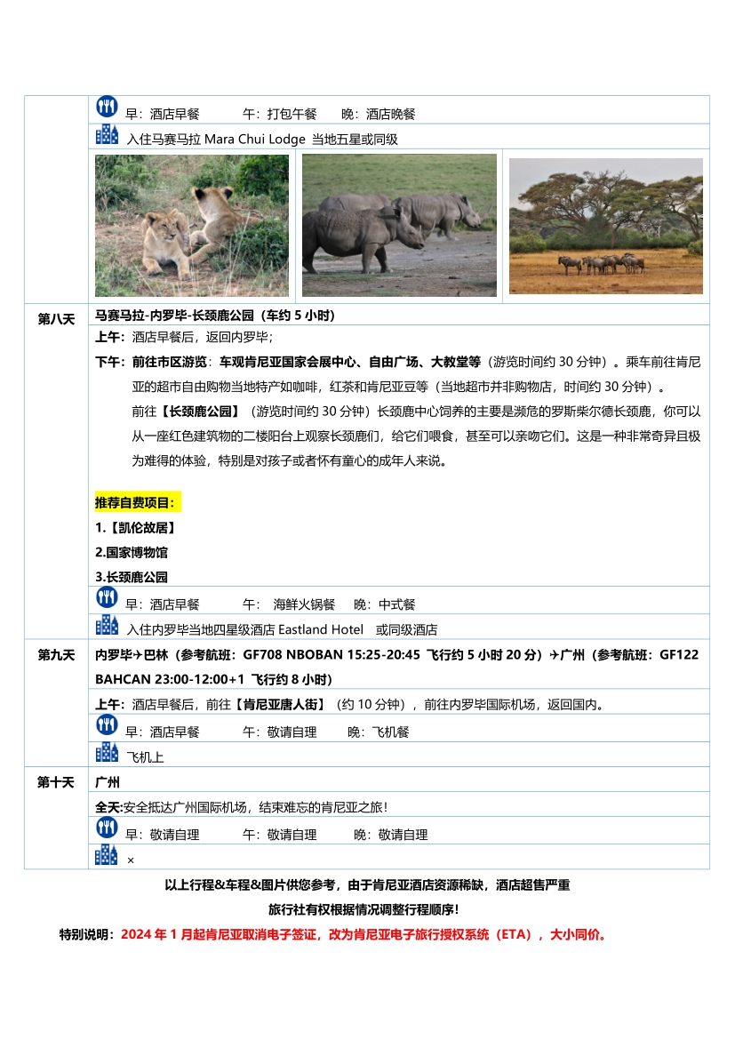3、境外司機、向導服務費、肯(kěn)尼(ní)亞電子旅行授權(quán)(ETA)(不含境(jìng)外司導(dǎo)服務費1700元/人及肯尼亞入境電子許可300元/人,請報名時和(hé)團費一起結算);