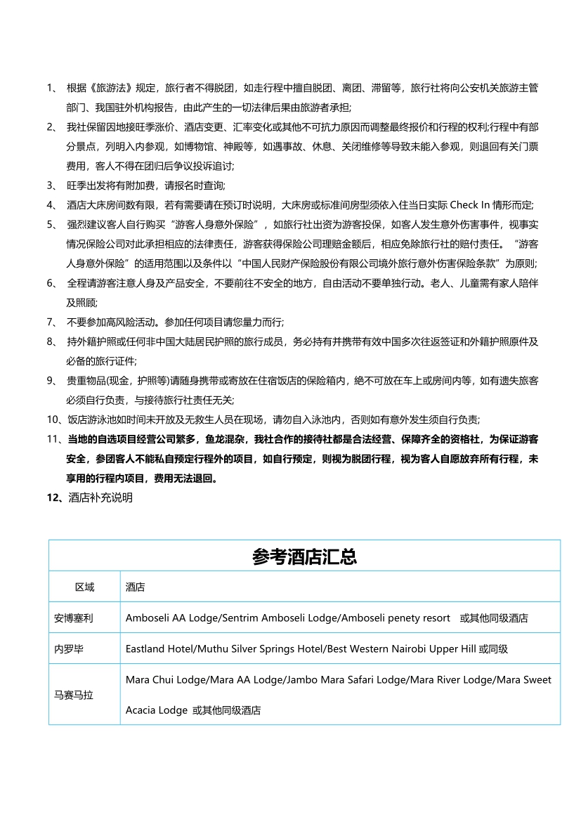 2、全程單房差RMB 3800/人(溫馨提示:非洲大部分酒店(diàn)1人入住補(bǔ)單房差默認為入住一間大床房,且大部分酒(jiǔ)店不(bú)能安排1人(rén)入住一間雙人房,敬請諒解);