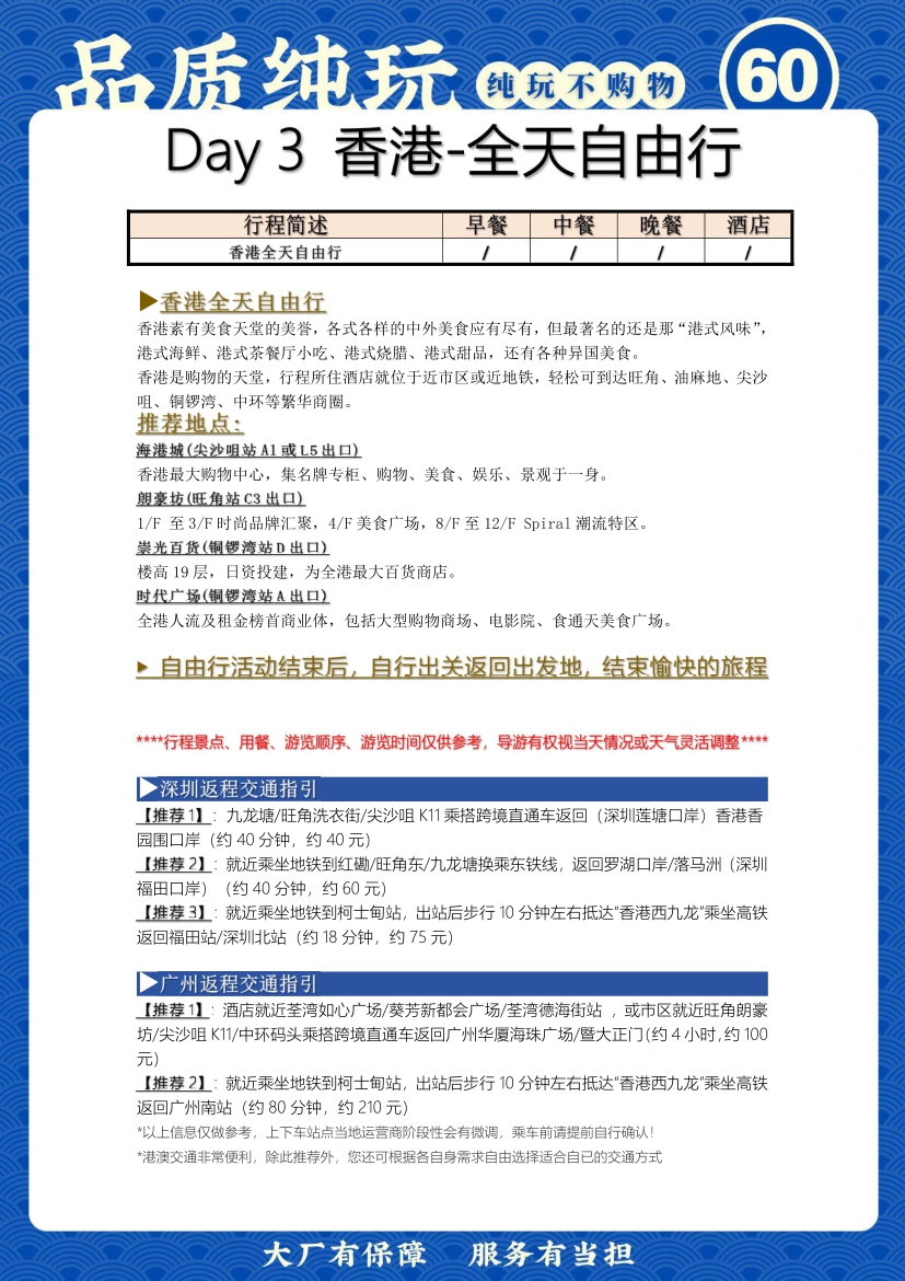 4.不含香港返回出發地交通
